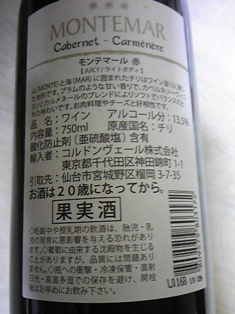 41本目のワインは赤 MONTEMAR Cabernet Carmenere
