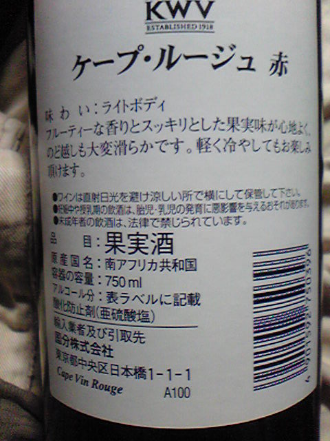 確か10月の上旬に飲んで未掲載だったワイン。しかもわたくしには飲みやすい!!