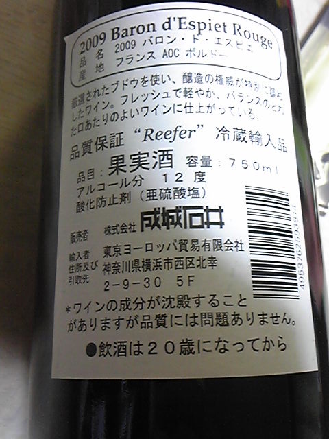 白ワイン一本を二人で。あとグラス赤を二杯。ビール一杯。なかなかの酔い加減。